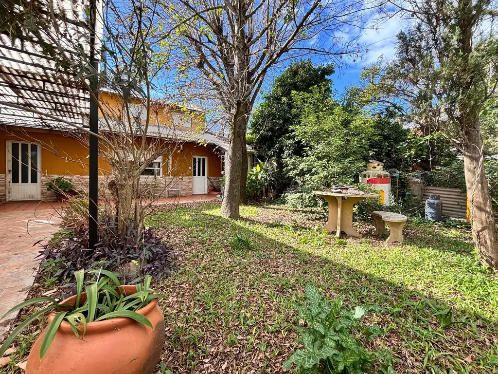 En el ingreso se encuentra un jardín con plantas y arboleda y el patio trasero de 100m2 aproximadamente posee espacio verde y parrillero.