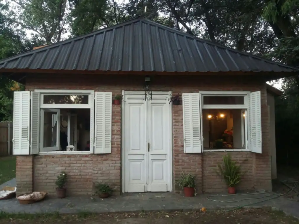 CÓMODA CASA DE DOS DORMITORIOS, UNO DE ELLOS EN SUITE. LIVING-COMEDOR, COCINA INTEGRADA. ENTREPISO.  JARDÍN DE 770 m2 (18 X 42 MTS) CON PARRILLA Y PILETA DE NATACIÓN.