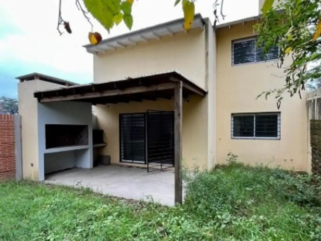 Desarrollada en dos plantas con jardín delantero y entrada de auto.