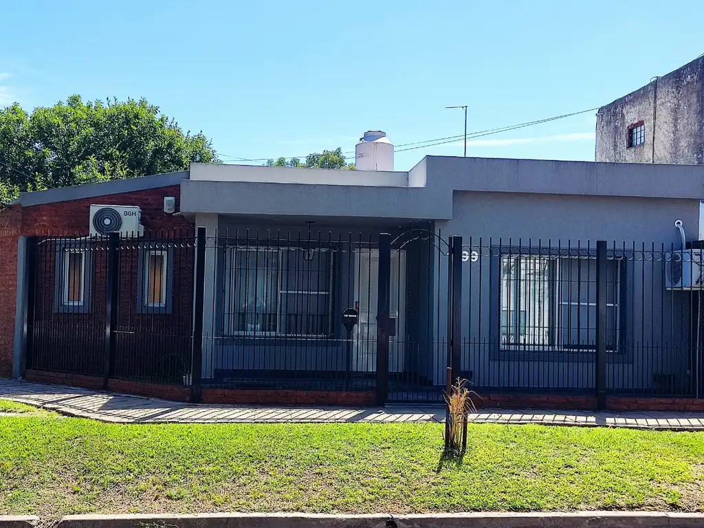 Cuenta con living comedor, cocina comedor, dos dormitorios con placar, baño completo con hidromasaje, quincho completo con parrilla y baño exterior con ducha y lavadero, patio y cochera.