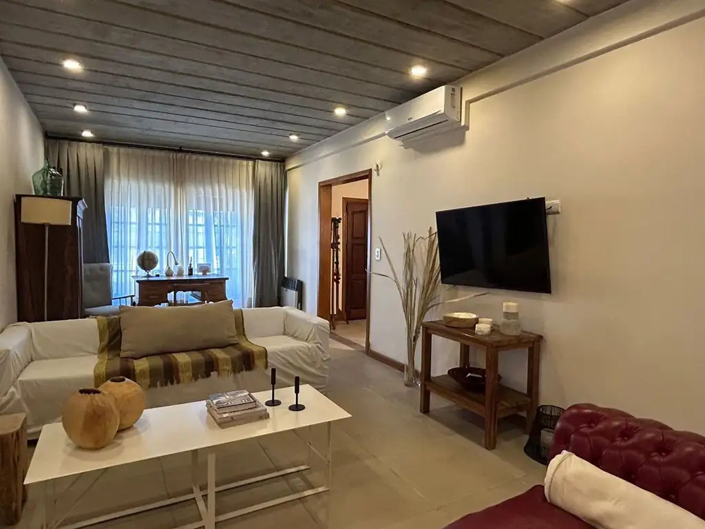AMBIENTES: Cuenta con un amplio living-comedor con vista al frente y contrafrente, cocina y comedor diario, toilette de recepción. El dormitorio principal posee baño en suite y vestidor. Complementan los espacios exteriores un parque, galería cubierta, piscina y parrilla.