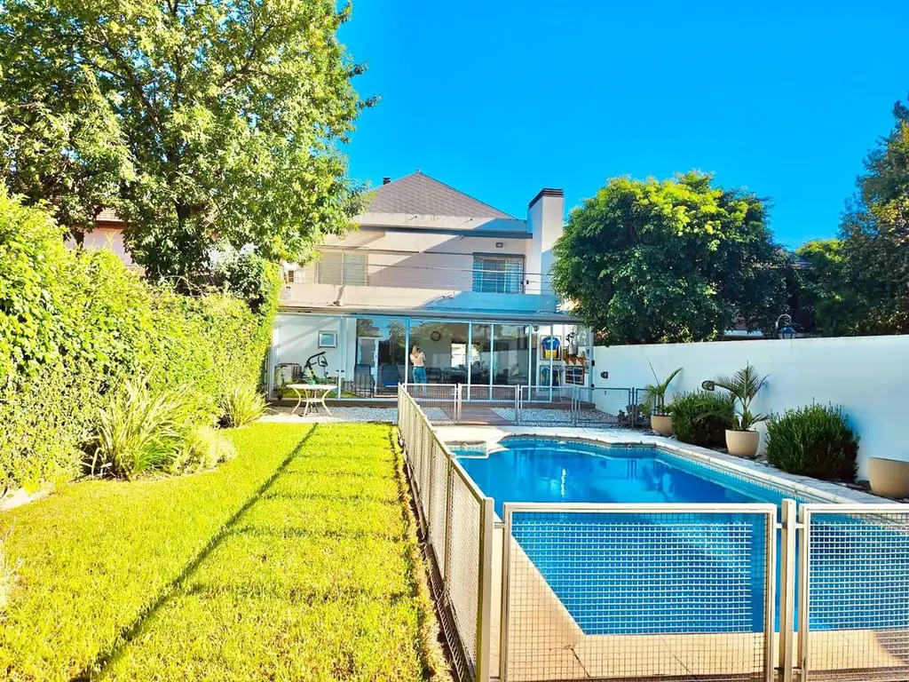 El inmueble se encuentra en un excelente estado de conservación, el sector social de la casa se conforma por su living comedor con la cocina integrada con barra desayunador, toilette de recepción amplio, galería cubierta con parrilla y amplio jardín libre con piscina climatizada quincho con baño completo.