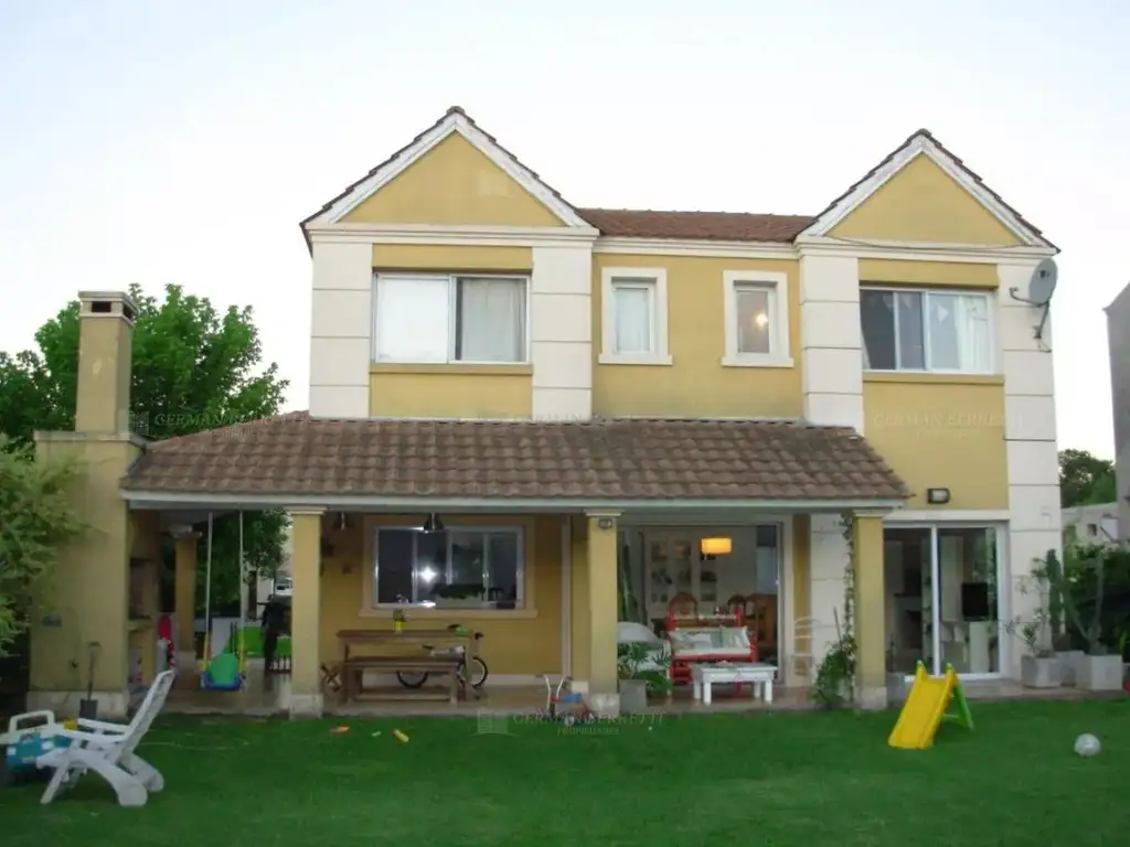 Planta baja: Living + Comedor. Cocina, hogar a leña. Estudio. Baño completo. Planta alta: Tres Dormitorios y el Principal en Suite (baño + vestidor). 2 Baños. Altillo/Baulera. Balcón al frente. Cochera Cubierta. Galería con Parrilla completa. Amplio Parque. Superficie de 600 m2 (lote) y 180 m2 cubiertos. Seguridad, área deportiva, gimnasio, corredor, juegos para chicos, restaurante, proveeduría, cancha de fútbol, basquet, pileta olímpica con 50 metros de largo y trampolines.. - Mat.