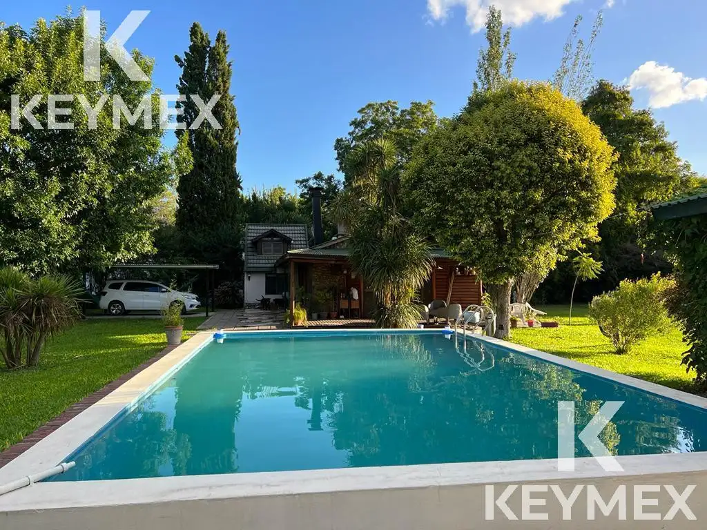En el exterior la casa tiene una amplia Galería con una inmejorable vista a la pileta y al parque ; el cual posee una forestación privilegiada con arboles de antaño.