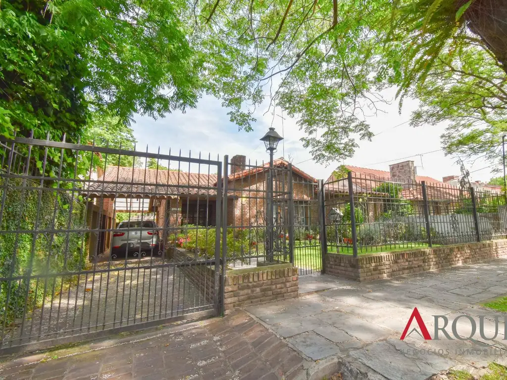 -Quincho muy amplio con baño completo de uso exterior y lavadero. Posee salida al jardín lateral y al de atrás donde se encuentra la piscina carcatreística de la época, forma de riñón, añosos árboles y cuarto de guardado.