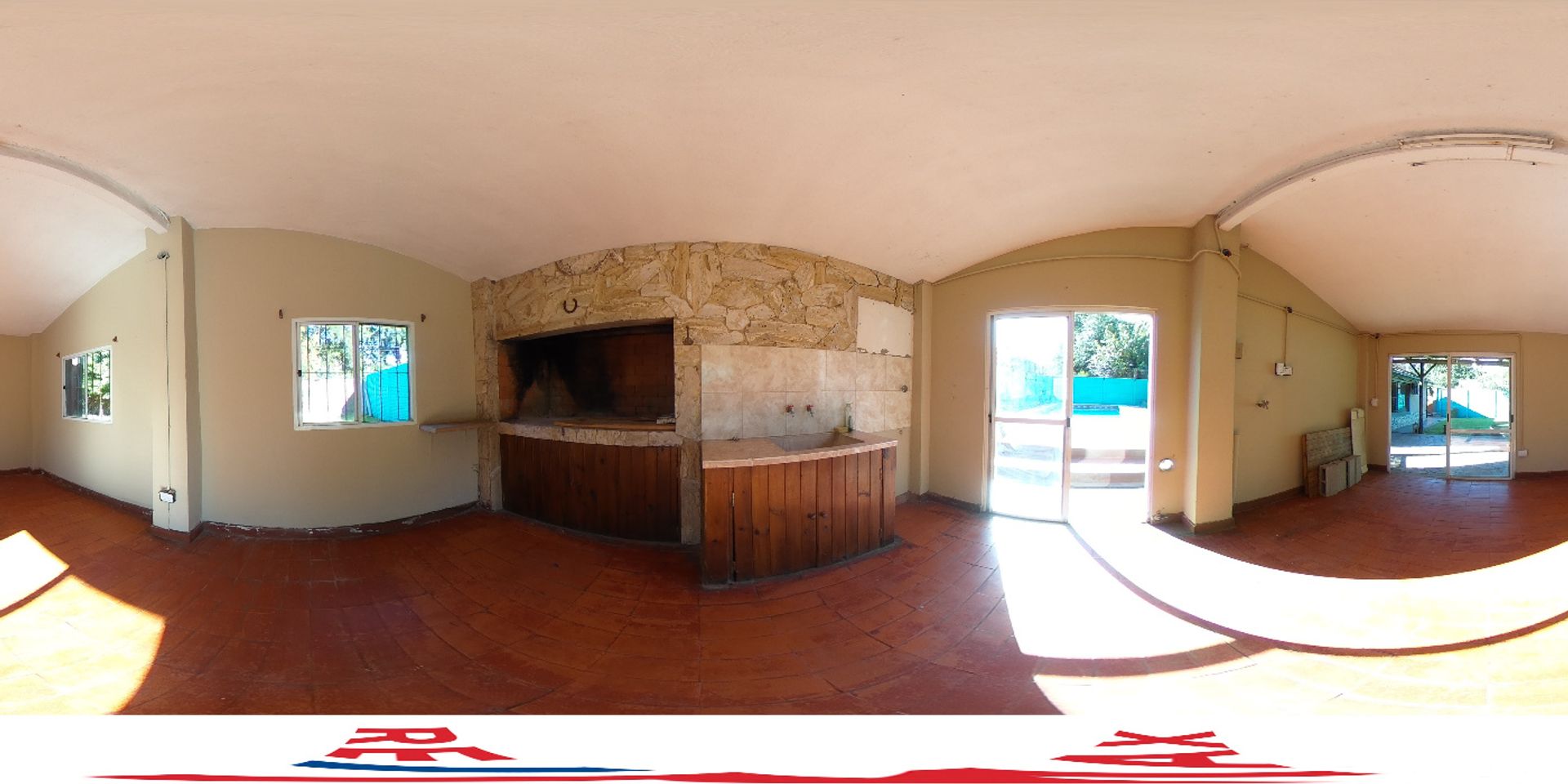 El quincho de 13,6 m² aprox. (4 m x 3,4 m aprox.) cuenta dos amplios ventanales que la conectan con el garaje y la piscina, una parrilla: 1,6 m x 0,9 m aprox. y una pileta con bajo mesada y conexiones para colocar el lavarropas en el mismo y a continuación del quincho se encuentra el baño de 2,7 m² aprox. (1,3 m x 2,1 m aprox.)