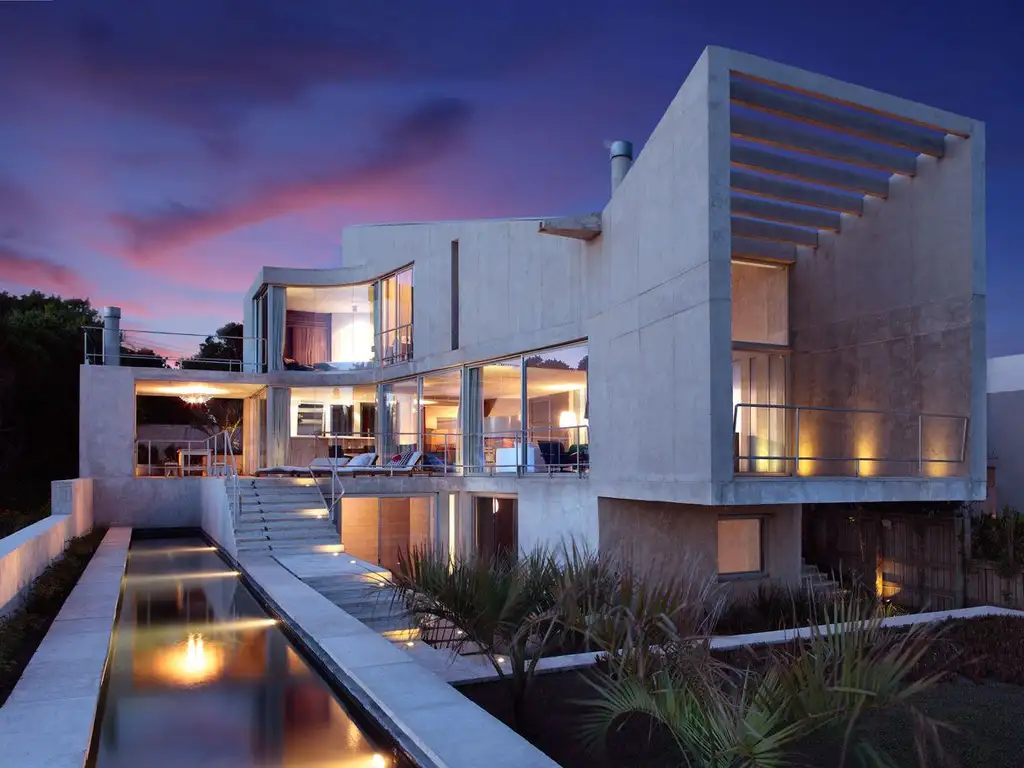 Equilibrada combinación de hormigón y vidrio, con pisos, placards y puertas interiores de madera añeja, mas excelentes aberturas de aluminio con vidrio laminado.