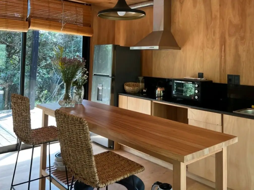 Ubicada sobre un terreno de 1275m2, rodeada de bosque, ideal para un descanso temporal o para vivir todo el año con absoluta privacidad.