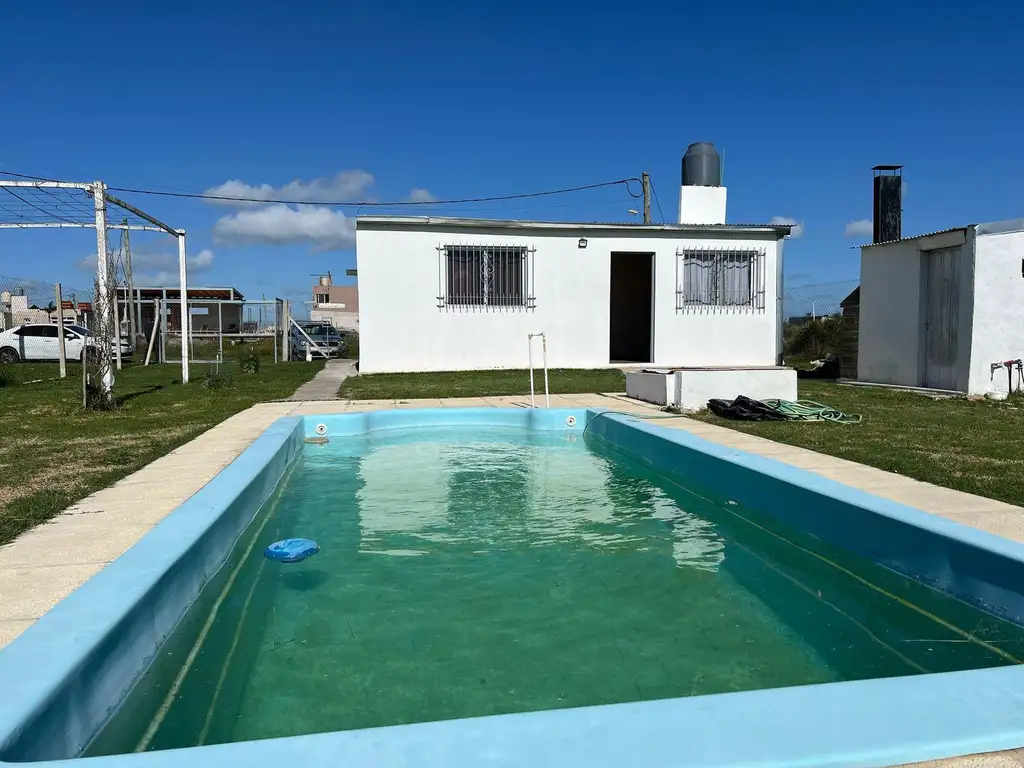 Además, dispone de parrilla, depósito y pileta de fibra de 6,20 x 2,60 x 1,20 m con gabinete de filtrado y bomba. En el terreno se encuentran diversas plantas frutales junto con algunos árboles de sombra de tamaño pequeño o mediano.