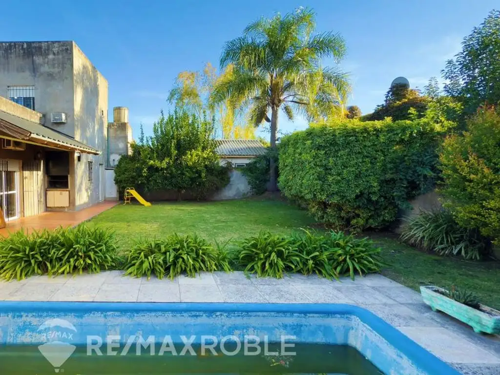 La casa ofrece un amplio jardín parquizado con pileta, perfecto para disfrutar del aire libre.