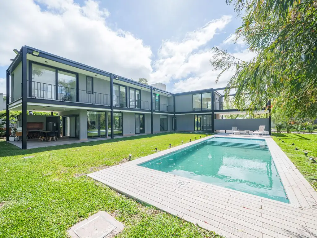 De construcción steel frame, esta propiedad a estrenar se desarrolla en dos plantas con una superficie total de 370 m2 (265 m2 cubiertos y 105 m2 semicubiertos entre galería, parrilla y balcón).