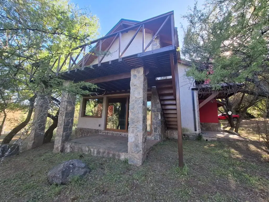 La propiedad consta de: en planta baja, espacio quincho con asador, comodos ambientes acogedores, un dormitorio principal, antebaño, baño sectorizado, living con estufa a leña con vistas al rio y al cerro, cocina comedor integrada equipada completa. sala de estar, y entrepiso de madera, con lugar para seis personas y espacios de descanso con hermosa vista. con Dec y terrrazas.