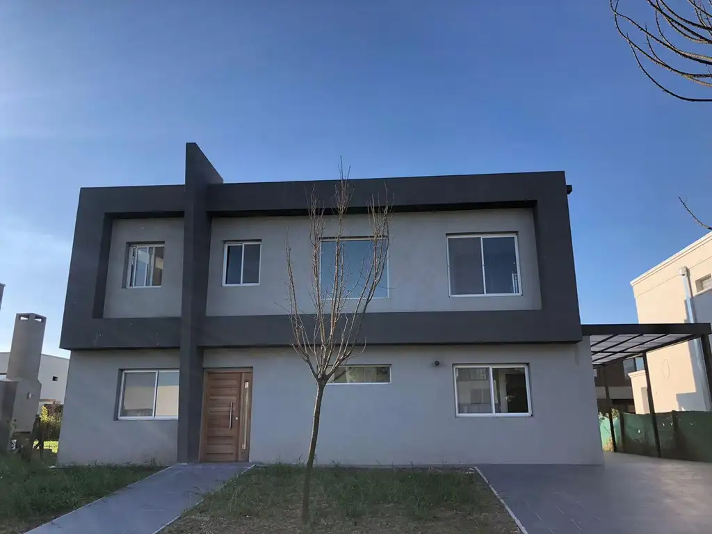 Moderna casa a ESTRENAR muy luminosa de amplios ambientes y desarrollada en dos plantas, 4 dormitorios - 4 baños – Vestidores completos - Losa Radiante – 6 Aires Acondicionados - Ventanas de aluminio doble vidrio DVH y piscina integrada con deck térmico y cascada de decoración - parking cubierto.