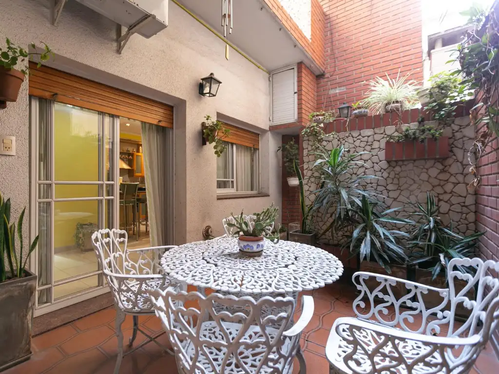 2° Planta: Al subir, nos encontramos con una muy amplia sala de estar, iluminada mediante luz natural por una ventana lateral. De frente a la puerta de ingreso a la segunda planta, encontramos una cocina secundaria, amoblada con alacenas y muebles bajo mesada. Hacia la derecha de ésta, se encuentra ubicado el baño principal, el cual cuenta con un ante-baño, y bañera con mampara. Continuando hacia la derecha, encontramos uno de los dormitorios, el cual posee iluminación por una ventana con vista al frente, y un amplio placard empotrado con puertas corredizas completamente espejadas. Retornando a la sala de estar, y de frente al dormitorio, se observa un pasillo con salida al patio de la segunda planta. Previamente a ello, por el pasillo y hacia la izquierda encontramos el ingreso al muy amplio Dormitorio Principal, el cual se encuentra amoblado con placard empotrado, y posee ingreso de luz natural mediante una ventana con vista al patio. Retornando al pasillo, previo a la salida hacia el , encontramos un amplio lavadero. Ya en el patio, hacia la izquierda, encontramos una escalera metálica en forma de caracol, el cual permite el acceso a la 3° planta.