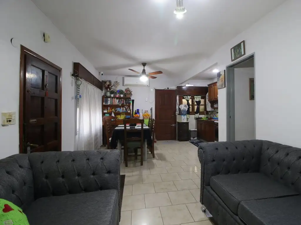 Gran oportunidad de inversión en una propiedad con múltiples posibilidades. Al ingresar, nos recibe un amplio living, seguido de una cocina comedor integrada, con vista al frente de la vivienda. A través del pasillo distribuidor accedemos a un baño completo, que conecta con la habitación principal y otras dos habitaciones cómodas y ventiladas.