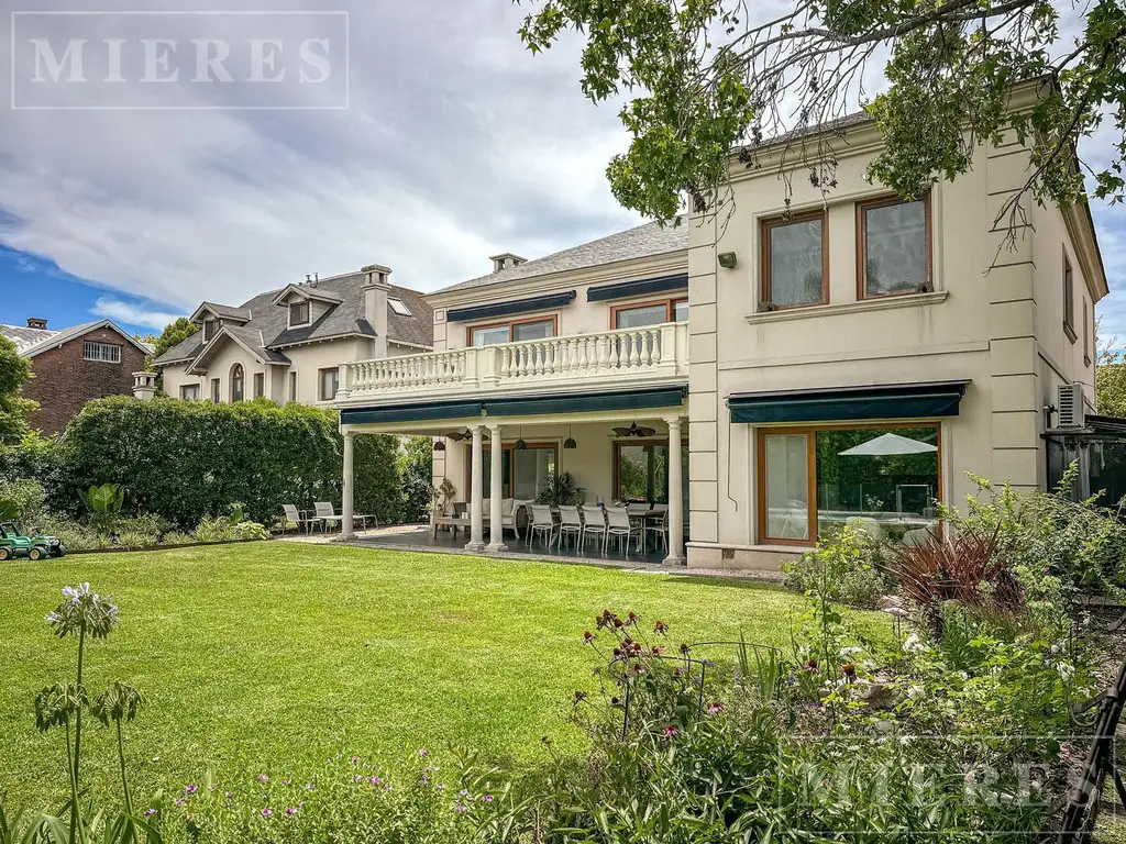 Afuera: Muy lindo jardín diseñado por paisajistas con pileta climatizada. Galería con parrilla, horno de barro y toldos. Quincho con sauna y baño de pileta.