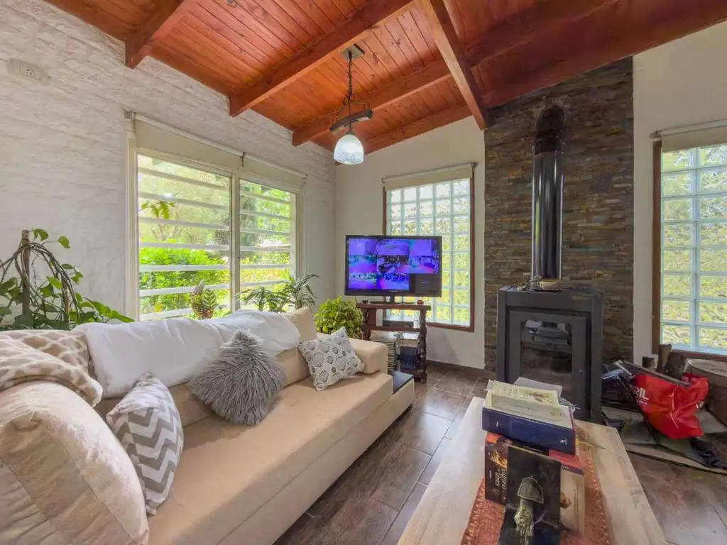 Destacan sus espacios exteriores parquizados, con variada arboleda y plantaciones de rosas que generan un entorno natural y privado. Entre sus principales características se encuentran pileta de natación construida con materiales premium, quincho, parrilla, hogar a leña, lavadero cubierto y dos living comedor con área de escritorio.