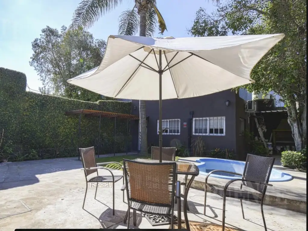 Hermoso jardín con piscina de fibra y parrilla. Quincho completamente equipado que puede cumplir la función de segunda vivienda. Amplio living comedor con cocina totalmente equipada e integrada. Baño completo. PA: Por escalera trampa se accede a dos dormitorios que comparten el aire frio calor. Fácilmente puede cambiarse el tipo de escalera .