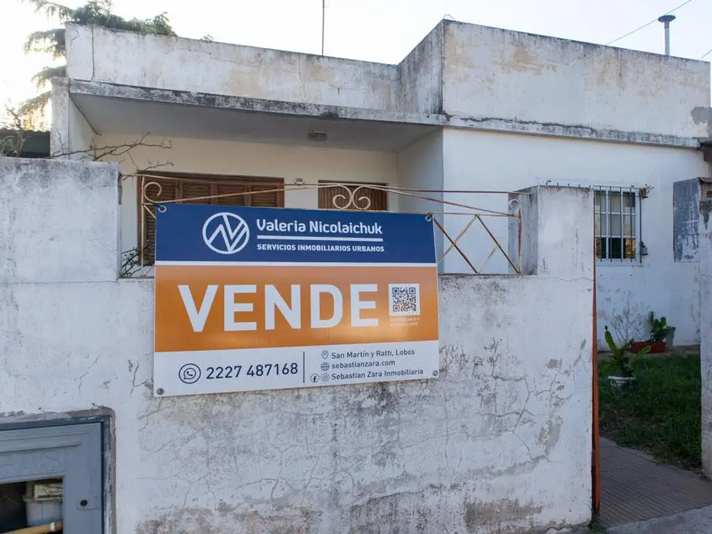 Casa de dos dormitorios con patio y garage en Lobos
