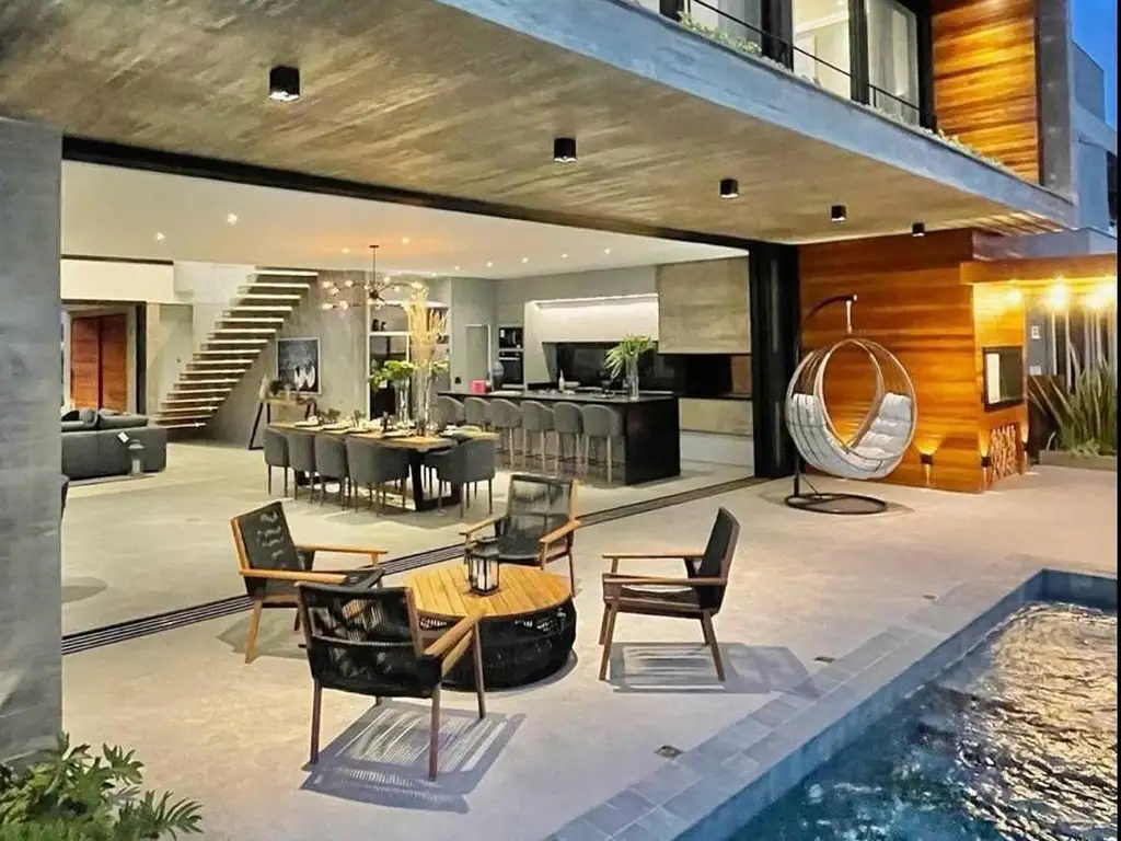 El jardín cuenta con paisajismo integral, pileta de 10 x 4 metros, solárium y un sistema de iluminación LED que realza cada rincón,