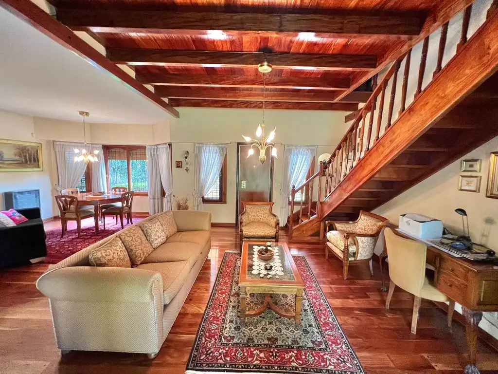 La casa cuenta con un amplio y luminoso living-comedor, con pisos de viraró entarugados que realzan la calidez del ambiente. Una escalera de madera lustrada lleva a un espacioso escritorio, playroom o 4° dormitorio, ideal para múltiples usos.