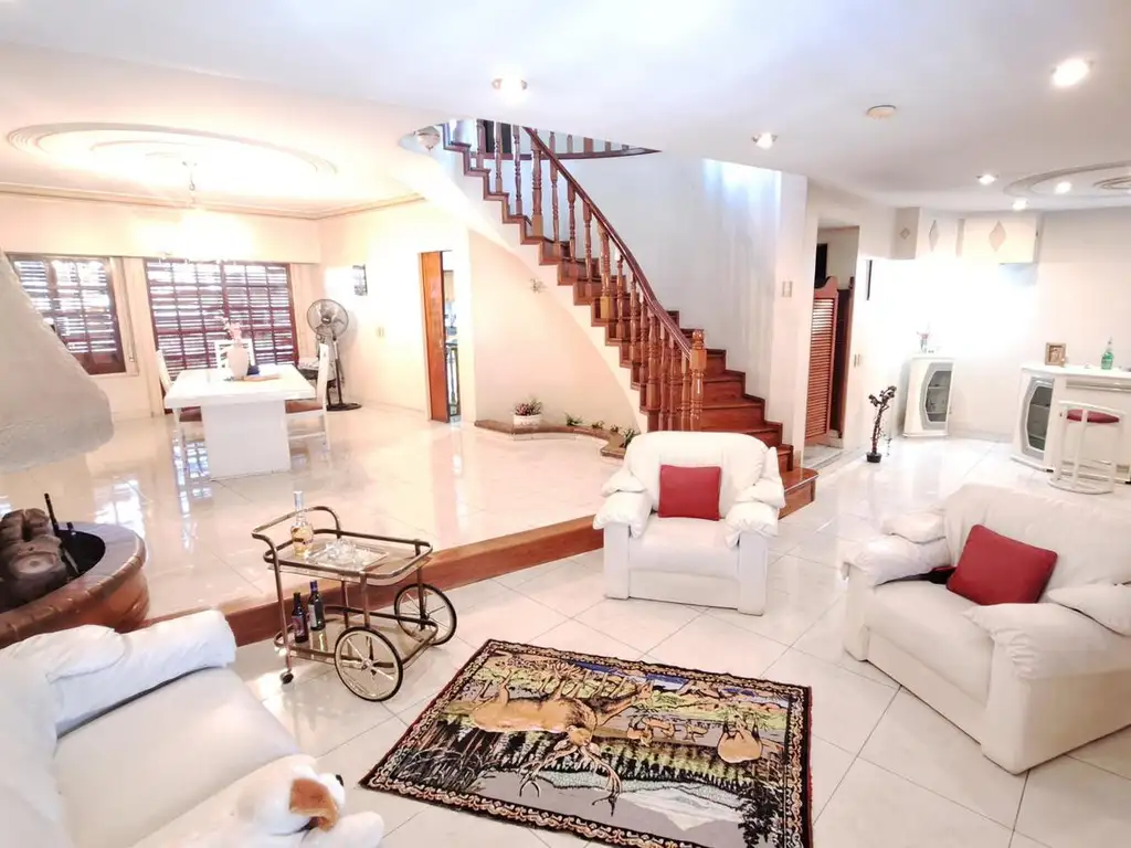 Tenemos un frente muy impactante con una casa de dos pisos, con un parque al ingreso, dando paso a un living recibidor con una barra para bebidas. Luego Pasamos a un Super Living de frente a contrafrente, donde se ve una vista amplia y luminosa.
