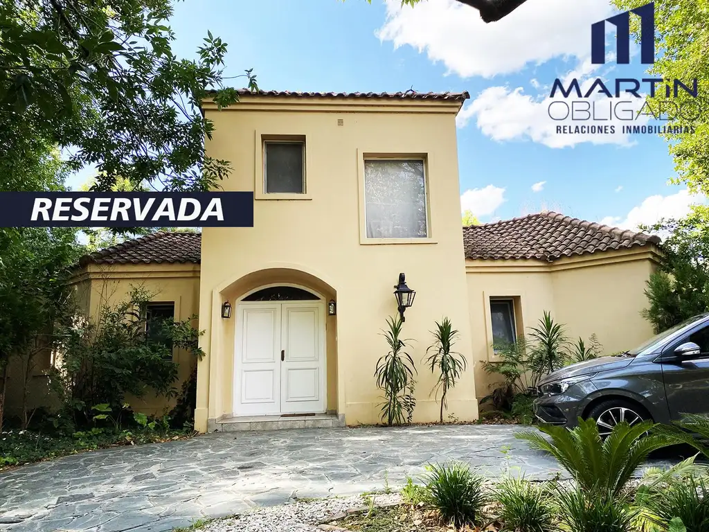 Ubicada en un exclusivo barrio cerrado de Bella Vista, esta hermosa casa de dos plantas se destaca por su amplio jardín, rodeado de abundante vegetación, ofreciendo un entorno de paz y privacidad.