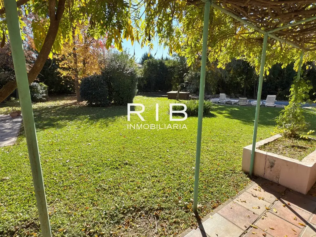 El jardín posee una gran variedad de árboles, huerta y la piscina posee solárium.