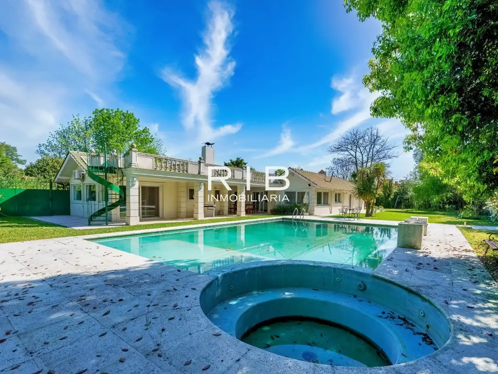 Porche y hall de entrada, gran living y comedor en doble altura, family con hogar y revestimientos y pisos de madera. Playroom. Moderna cocina con amoblamientos completos y comedor diario. Sector de parrilla y amplio lavadero. En el área privada, un estar distribuidor o escritorio. La Suite principal, con vestidor, en doble altura. Una suite junior con placares y 3 dormitorios con placares compartiendo 2 baños completos. En el exterior, la galería, la piscina con yacuzzi y el amplio jardín totalmente parquizado con riego. Cochera y amplio espacio guarda coche.