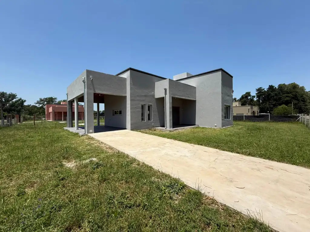 En su interior cuenta con una cocina completa integrada al living comedor, dos habitaciones y un baño completo. En el exterior dispone de una cochera para un auto, una galería con parrilla y una pileta de material de 7x3 metros con borde atérmico y equipo de filtrado. La casa se complementa con aberturas de aluminio, techo de chapa con cielo raso de madera, tejido perimetral en todos sus lados y portón eléctrico.