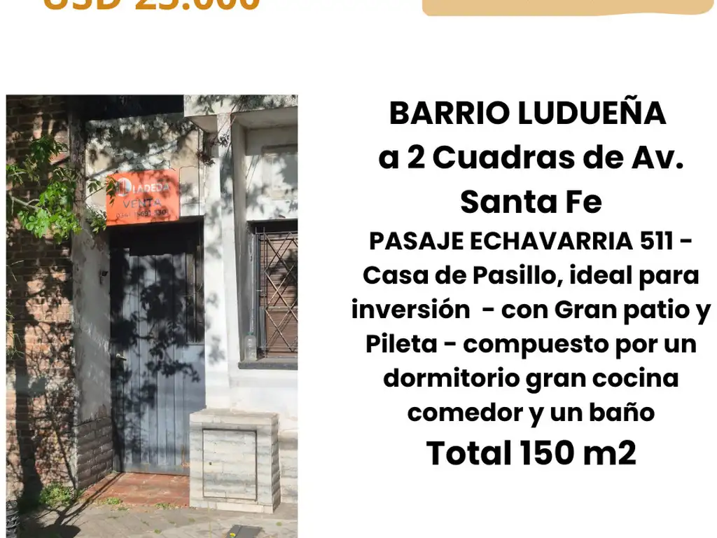 PASAJE ECHAVARRIA 511 - Casa de Pasillo, ideal para inversión - con Gran patio y Pileta - compuesto por un dormitorio gran cocina comedor y un baño