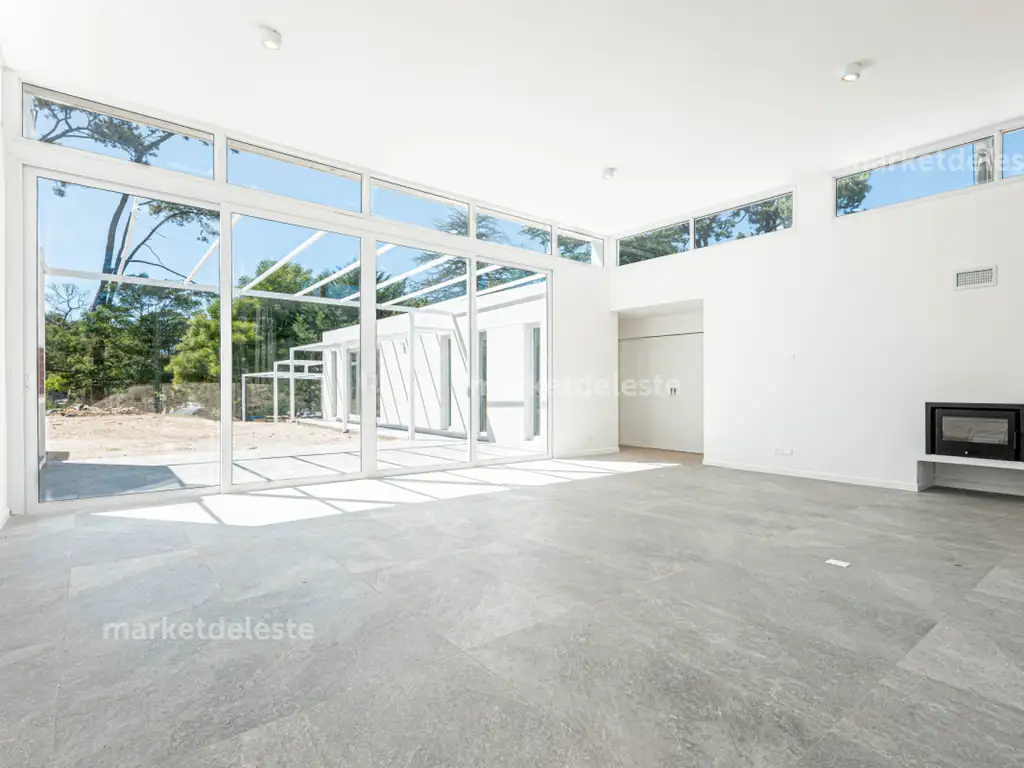 En el barrio de Lugano, en la intersección de las calles Paso de la Cadena esquina Alamein se encuentra esta casa totalmente construida en una planta con una distribución perfecta. Correctamente orientada para que el sol no deje ambiente sin visitar esta casa desarrollada en un nivel ofrece todo lo que uno puede esperar de una casa funcional . Mega living comedor con doble altura, cocina con isla , toilette, despensa , estar tv, 4 dormitorios , dos de ellos en suite. Su master suite con walk-in closet, toda la casa con losa radiante sectorizada, parrillero en su gran galería , mega laundry, depósitos , dependencia de servicio y dos cocheras. La casa cuenta con carpintería de PVC con doble vidrio de la marca ROYAL una de las tope de gama en esta área. Se entregara con pozo , riego y cerramiento .