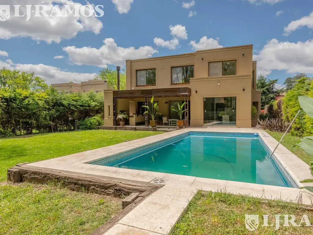 En la planta baja, encontrará un elegante hall de entrada, un living con hogar a leña, una cocina americana con comedor, y una dependencia de servicio en suite ideal para invitados. La planta alta alberga el dormitorio principal en suite con jacuzzi y vestidor, además de dos dormitorios con placares y un baño completo.
