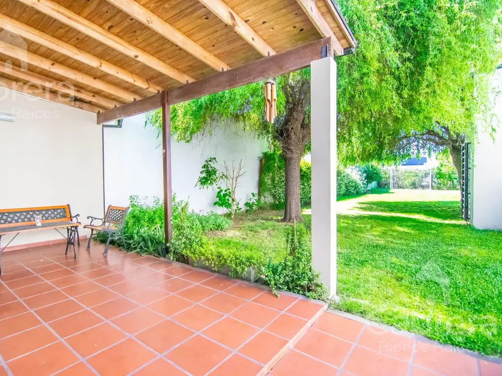La propiedad cuenta con garaje para un auto y recibidor. Living comedor, cocina semi integrada, baño en planta baja y lavadero. En planta alta se encuentran 2 habitaciones, también tiene losa lista para construir dos habitación mas y un baño. En parque se encuentra la parrilla y una galería. Cuenta con perforación para la instalación de una pileta.