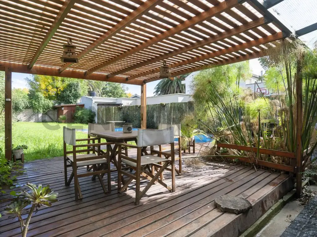 El pulmón verde de la casa es uno de sus mayores atractivos: un amplio jardín con deck, pileta y un galpón al fondo, perfecto para actividades al aire libre, almacenamiento o un futuro espacio de trabajo o hobbies. La cochera semicubierta cuenta con portón automático, brindando comodidad y seguridad.