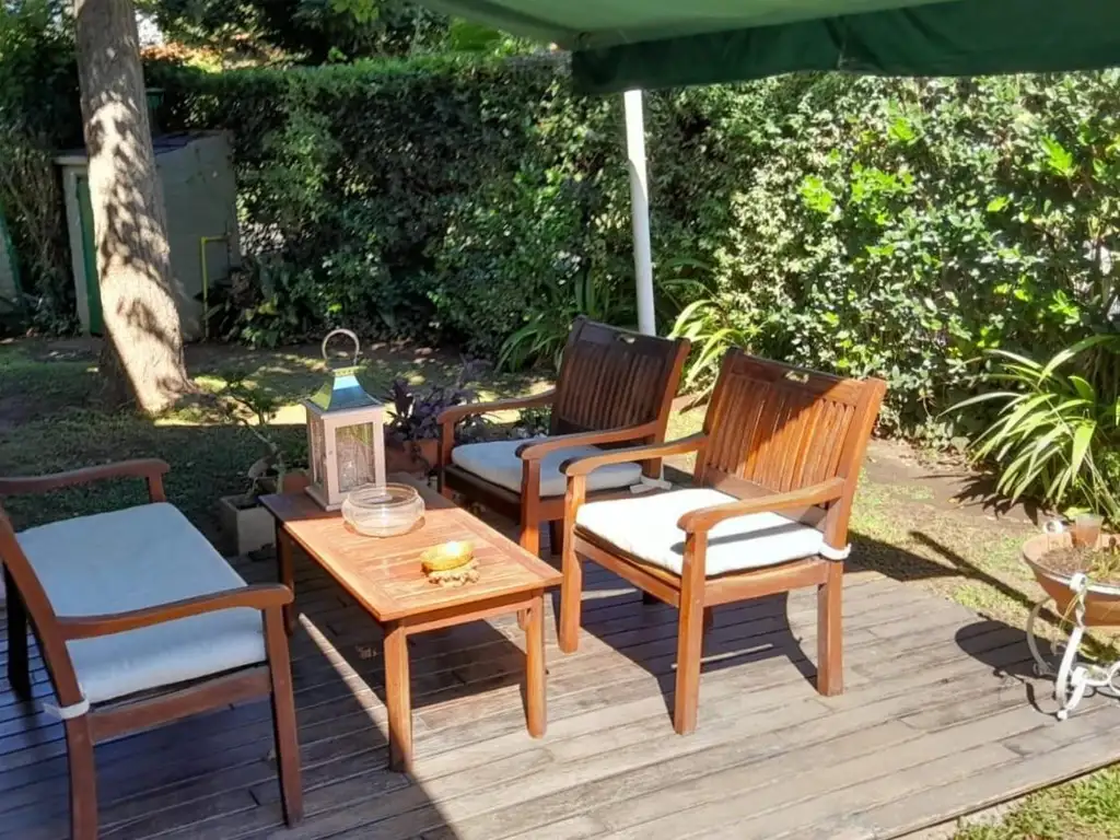 En Exterior: Jardín parquizado y pileta. Muy lindo Quincho con cerramientos de aluminio y doble vidrio, aire acondicionado f/c, mesada con bacha, parrilla y horno a gas. Deck con toldo. Cochera semicubierta para dos autos con gran mueble de guardado.