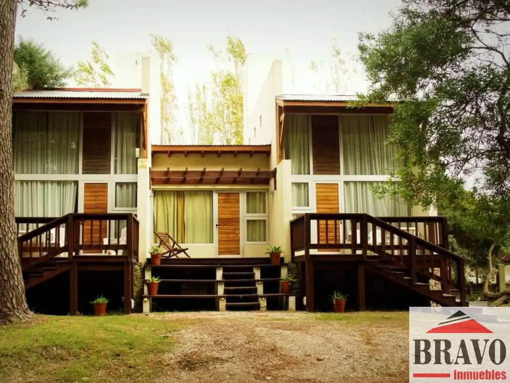 Construido en dos plantas. Planta Alta: Amplio dormitorio con sommier matrimonial y gran ventanal. TV con cable. Baño completo y compartimentado. Planta Baja: Dormitorio para 2/3 chicos, con cama tipo marinera y otra a nivel. Toilette amplio ambiente living-comedor con un diván cama para otras 2 personas. Cocina completa con horno, heladera, microondas y demás enseres para 7 personas. SMART TV 32?. Calefacción por tiro balanceado (en ambas plantas). Parrilla individual dentro de la unidad (en pequeño balconcito). Deck con reposeras. Estacionamiento sombreado junto a la unidad .-