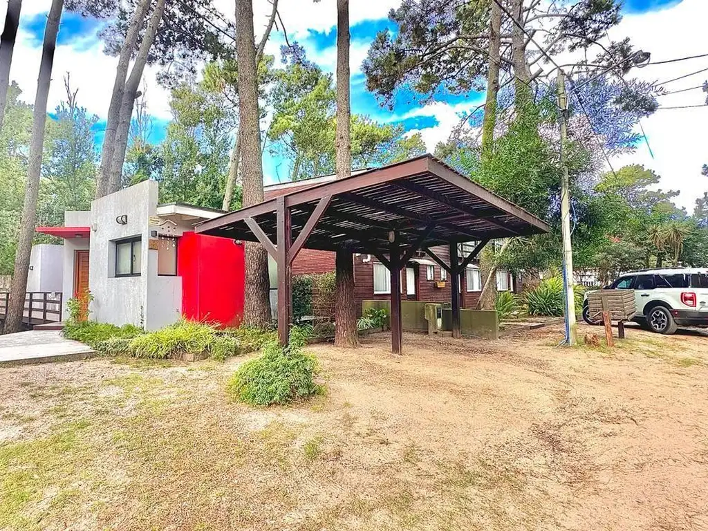 La casa de tres ambientes se encuentra al frente y está integrada por living con chimenea, comedor, cocina, una habitación matrimonial con balcón con hermosa vista arbolada y otra con dos camas de una plaza. Baño completo, compartimentado. La misma también cuenta con un deck lateral con juego de mesa y sillas de jardín, acompañando a su parrilla individual.