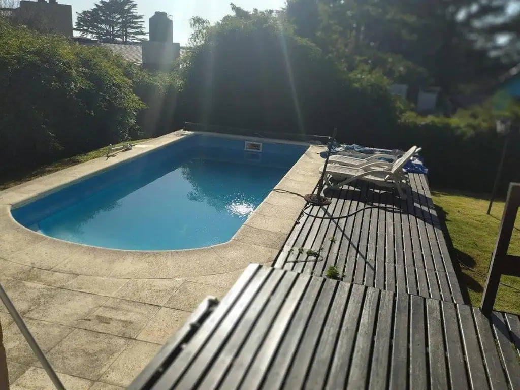 Tiene una amplia cochera semicubierta con parrilla. El parque amplio tiene una gran pileta de material. Digna de visitar.