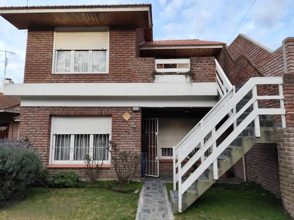 En la planta alta se encuentra departamento de 3 ambientes, de construcción más reciente, (5 años apróx.), al que se accede por escalera exterior desembocando en una amplia terraza. Ofrece un luminoso living-comedor amplio, cocina concepto abierto separada por barra desayunadora, muebles en bajo mesada de madera maciza y mesada revestida en cerámico. Los pisos son cerámicos en todos los ambientes.