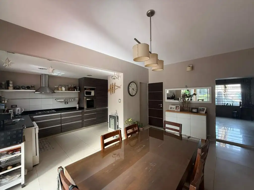 En planta baja encontramos un amplio living con escalera de acceso a la planta superior , cocina comedor integrada, lavadero, toilette; escritorio o cuarta habitación , garage cubierto con portón automático. Hermosa galeria cubierta ( 3.70 x 8.66) , gran jardín con pileta, parrilla, horno de barro.
