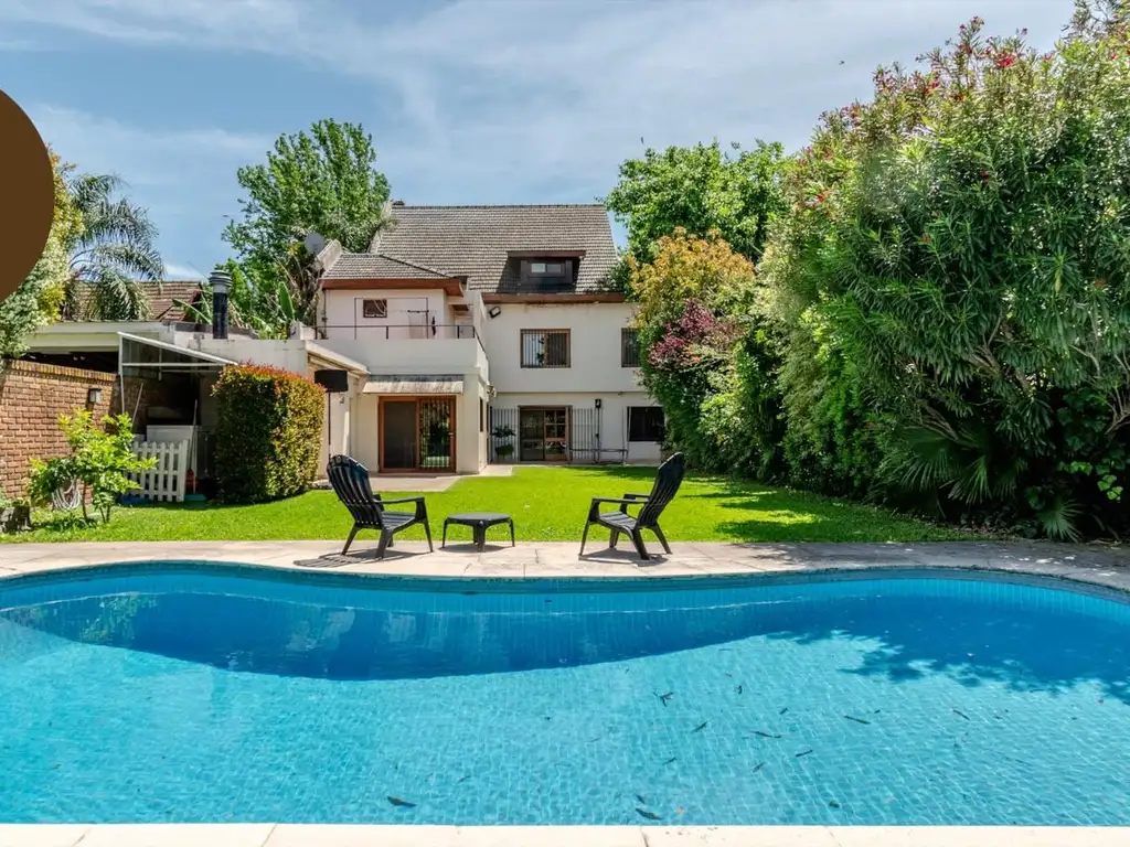 El jardín es tan lindo y amplio como la casa, realmente es un parque grande, con un quincho con parrilla y bacha, una gran galería con toldo, un cuarto de guardado de cosas (jardinería/piscina) y una gran piscina al fondo, todo con un entorno y pulmón de manzana ideal.