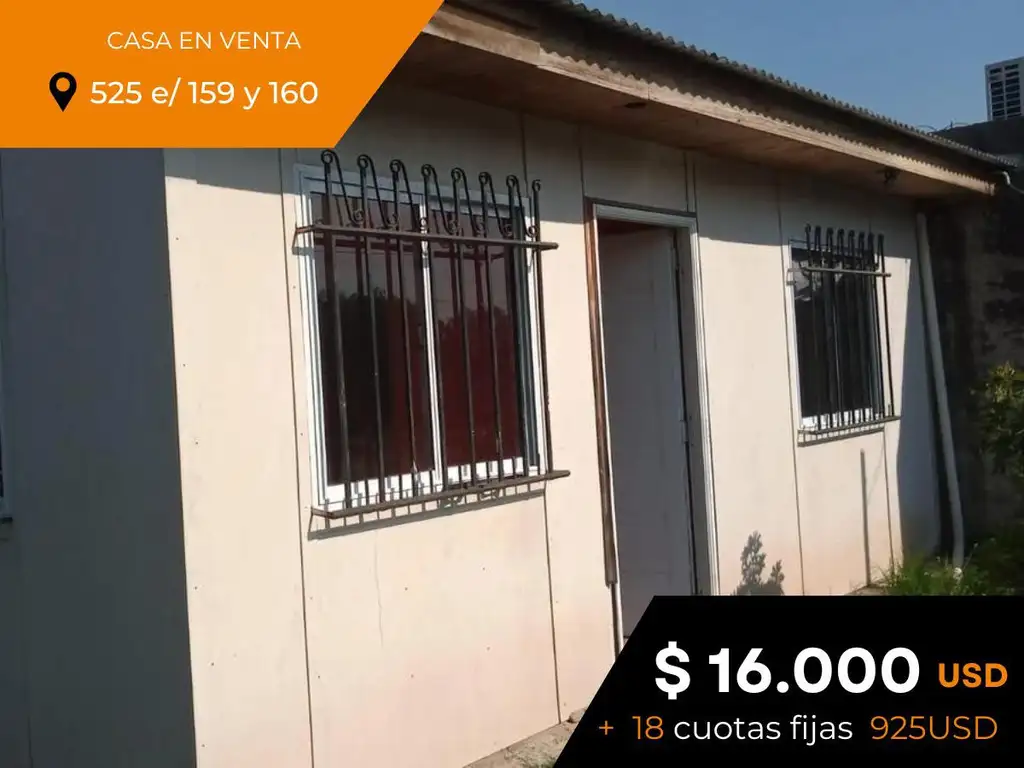 _ Casa de 2 dormitorios en venta ubicada sobre calle 525 entre 159 y 160 (Melchor Romero, La Plata, Buenos Aires). Desarrollada en una planta, con disposición frente y orientación norte. Posee cocina equipada con muebles bajo mesada, living, comedor, dos dormitorios y un baño completo. Amplio patio con parrilla._ La propiedad tiene una superficie aproximada total de 300mts2, de los cuales 40mts2 son cubiertos.
