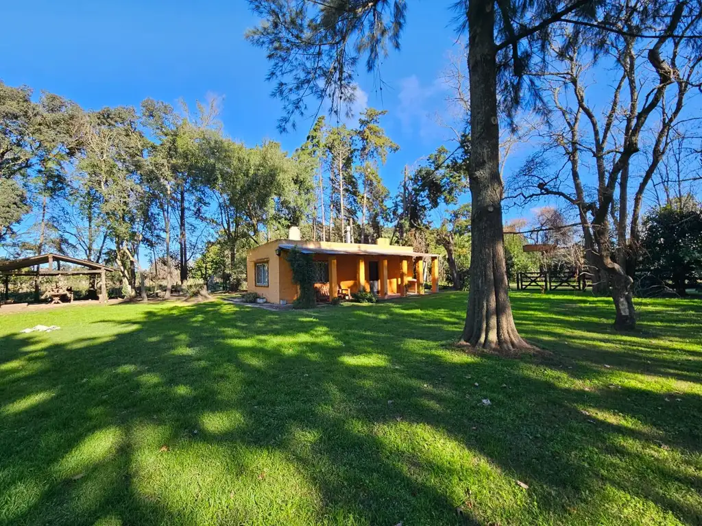 Divina chacra de 4.16 has en Mercedes, cerca de Ruta 5 y Ruta 41 camino a Navarro, excelente zona. Campo mixto ideal para uso vacacional y de fines de semana. Casa en 1 planta con: Living comedor con chimenea, 2 dormitorios y 1 baño completo, galería. Gran parque con pileta y sector de frutales, quincho con parrilla y fogonero. Tanque de agua e instalación nuevas. Galpón para maquinaria y herramientas