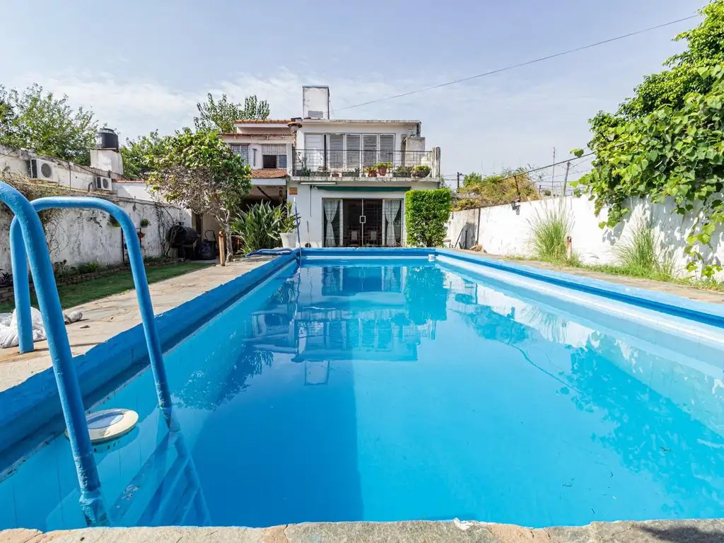 En el exterior, dispone de una cochera cubierta y pasante para tres autos. El jardín incluye una piscina, y en el fondo de la propiedad se encuentra un quincho equipado con parrilla, cocina, baño y dos habitaciones, una de ellas en planta alta.