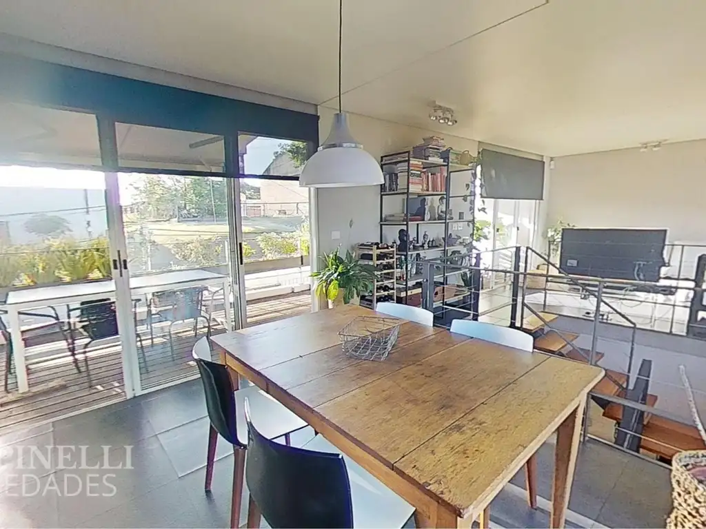 Planta Alta: cocina con doble mesada, placard e isla con anafe y horno empotrado, integrada al comedor diario, terraza lavadero, living con estufa a leña de alto rendimiento con doble vidrio y amplia terraza al frente con toldo y parrillero. Los grandes ventanales permiten una buena iluminación natural todo el día.