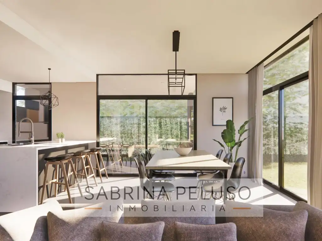 - Planta baja: living comedor con salida a galería cubierta y parrilla, cocina con isla y amoblamiento completo, toilette, cochera pasante para dos vehículos y parque con árboles.