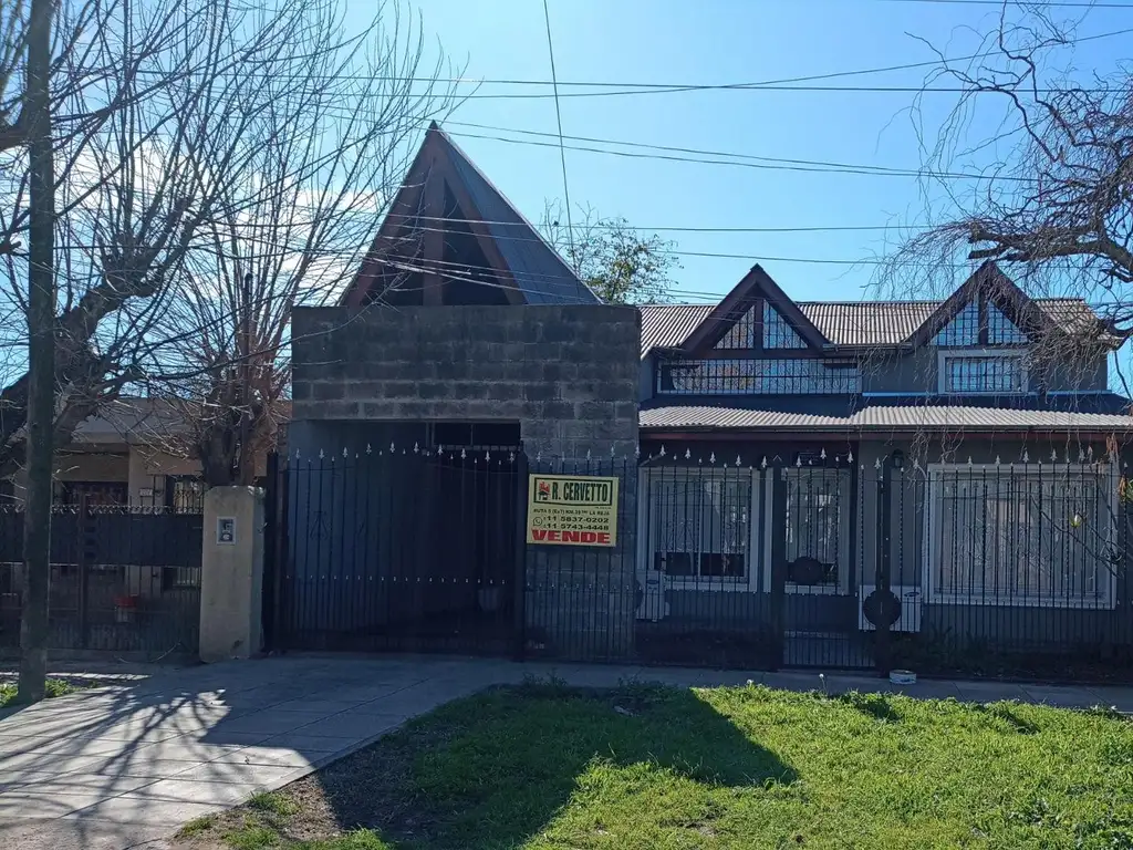 EN VENTA Bello Chalet 2 Plantas s/lote 260 m2 En Planta Baja Amplio living comedor, cocina comedor diario, dormitorio principal, baño completo c/ bañera hidromasaje, cochera y garage. En Planta Alta, 3 dormitorios, baño completo, playroom / espacio estudio.