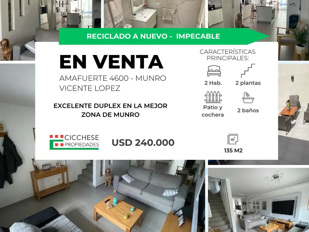 MEJOR ZONA DE MUNRO PH DE 135 M2 CATEGORÍA, RECICLADO A NUEVO IMPECABLE APTO CREDITO BANCA