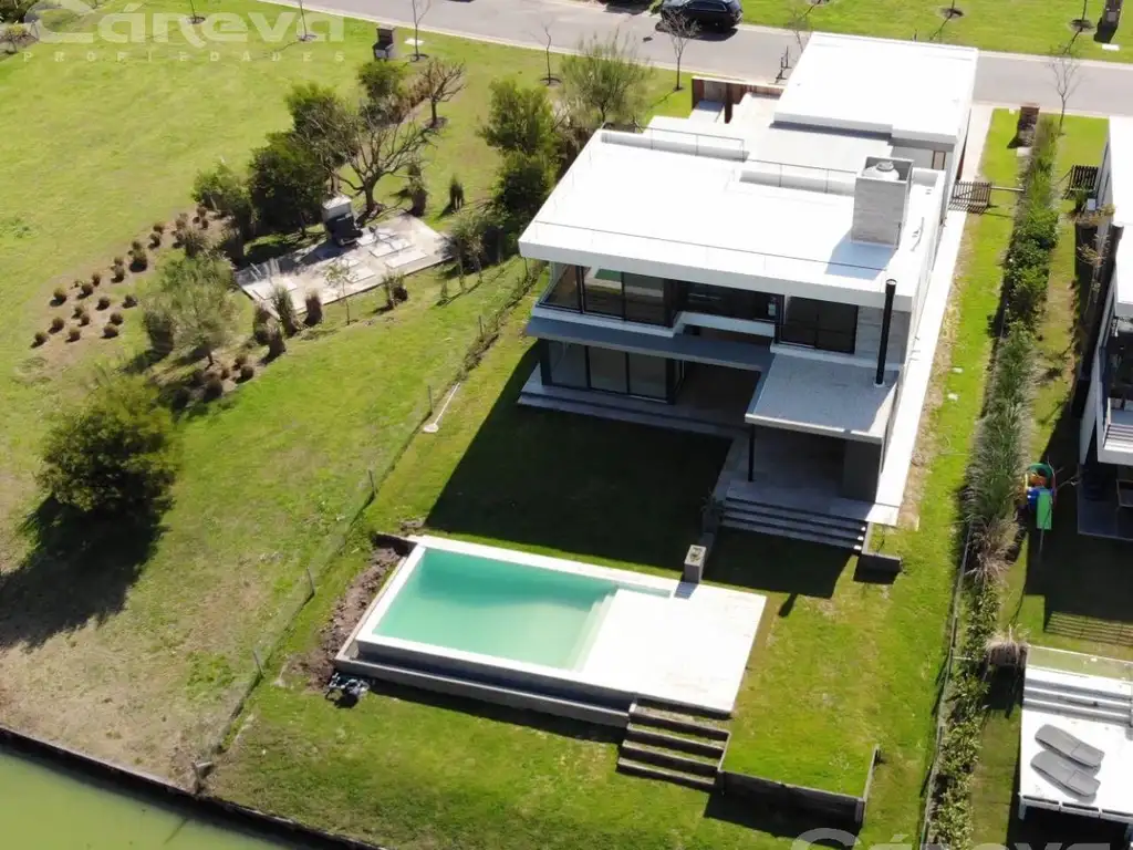 En el exterior, galeria en L con amplia parrilla con tapa de acero, larga mesada exterior con bacha. Piscina revestida en venecitas con zona humeda y borde infinito. Bellísima vista a la laguna central.
